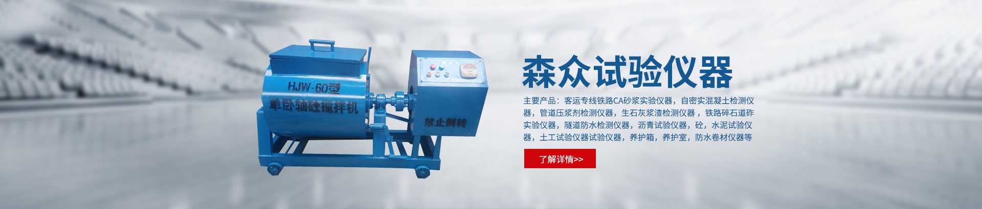 滄州森眾試驗儀器有限公司是目前國內(nèi)生產(chǎn)公路試驗儀器、建筑試驗儀器的重點骨干企業(yè)。在國內(nèi)具有較高的度,檢測手段完善,技術力量雄厚。產(chǎn)品嚴格按照,國家標準設計生產(chǎn),多次在國家重點工程中標。除配套供應試驗儀器設備外,我公司還承擔新建試驗室的規(guī)劃設計,設備選型,安裝調(diào)試,配件供應與后勤保障等業(yè)務。主要產(chǎn)品:客運專線鐵路CA砂漿實驗儀器,自密實混凝土檢測儀器,管道壓漿劑檢測儀器,生石灰漿渣檢測儀器,鐵路碎石...